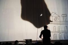 Nella suggestione del parco notturno un libro enorme si anima, si colora e si racconta, grazie alle sue magiche proiezioni. Tessaro è autore poliedrico, si muove tra letteratura per l’infanzia, illustrazione e teatro. Dal suo interesse per “il disegnare parlato, il disegno che racconta” nasce “il teatro disegnato”. Sfruttando le impensabili doti della lavagna luminosa, con una tecnica originalissima, dà vita a narrazioni tratte dai suoi testi e a performance teatrali coinvolgenti ed efficaci.