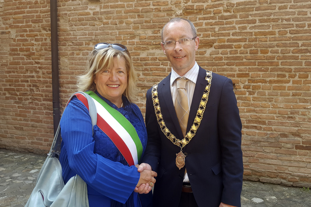 Sindacodi Kilkenny Michael Doyle: “Il sindaco Costi firmò l’accordo di gemellaggio nella sua recente visita a Kilkenny per le festività del giorno di San Patrizio e ho molto piacere nell’essere qui nella vostra meravigliosa città per ricambiare questa firma.