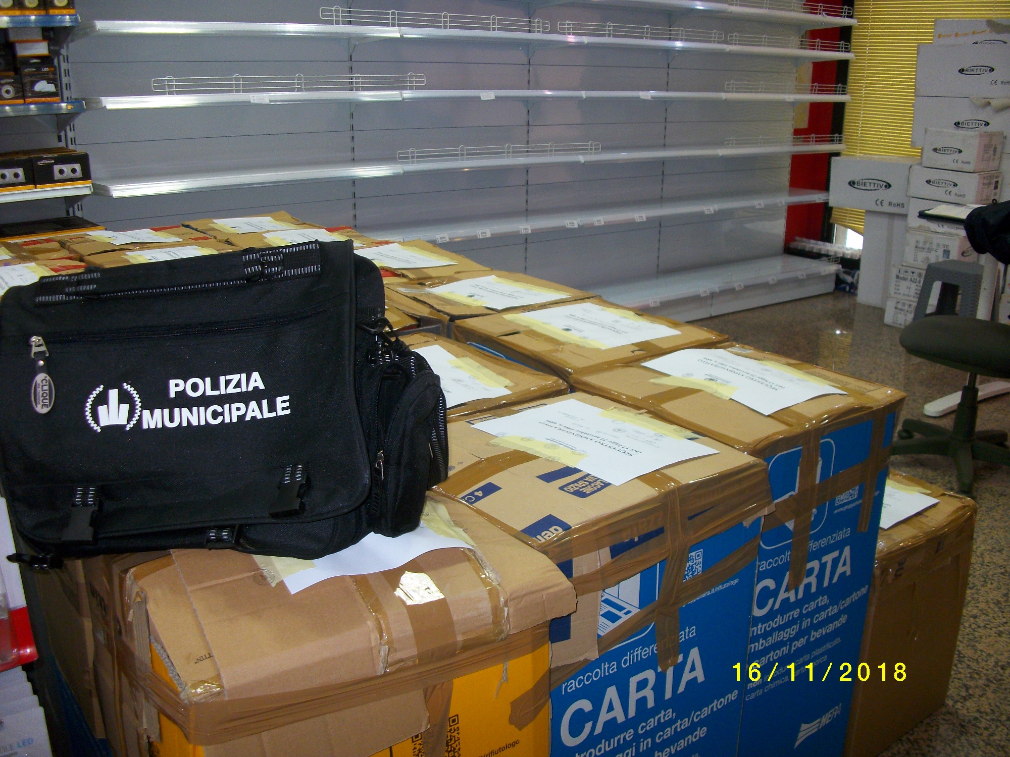 La prima infrazione riguarda l’abusività della struttura, in quanto i proprietari avevano dichiarato un esercizio di vicinato, invece della media struttura di vendita che si è rivelata. Ulteriori indagini hanno scoperto l’utilizzo di lavoro minorile straniero non autorizzato, pertanto l’Ispettorato del lavoro, con il quale c’è stata collaborazione, ha proceduto con un’informativa di reato. Sono stati sequestrati 1.200 pezzi di materiale elettronico senza il marchio CE. Infine, sono state rilevate irregolarità edilizie.