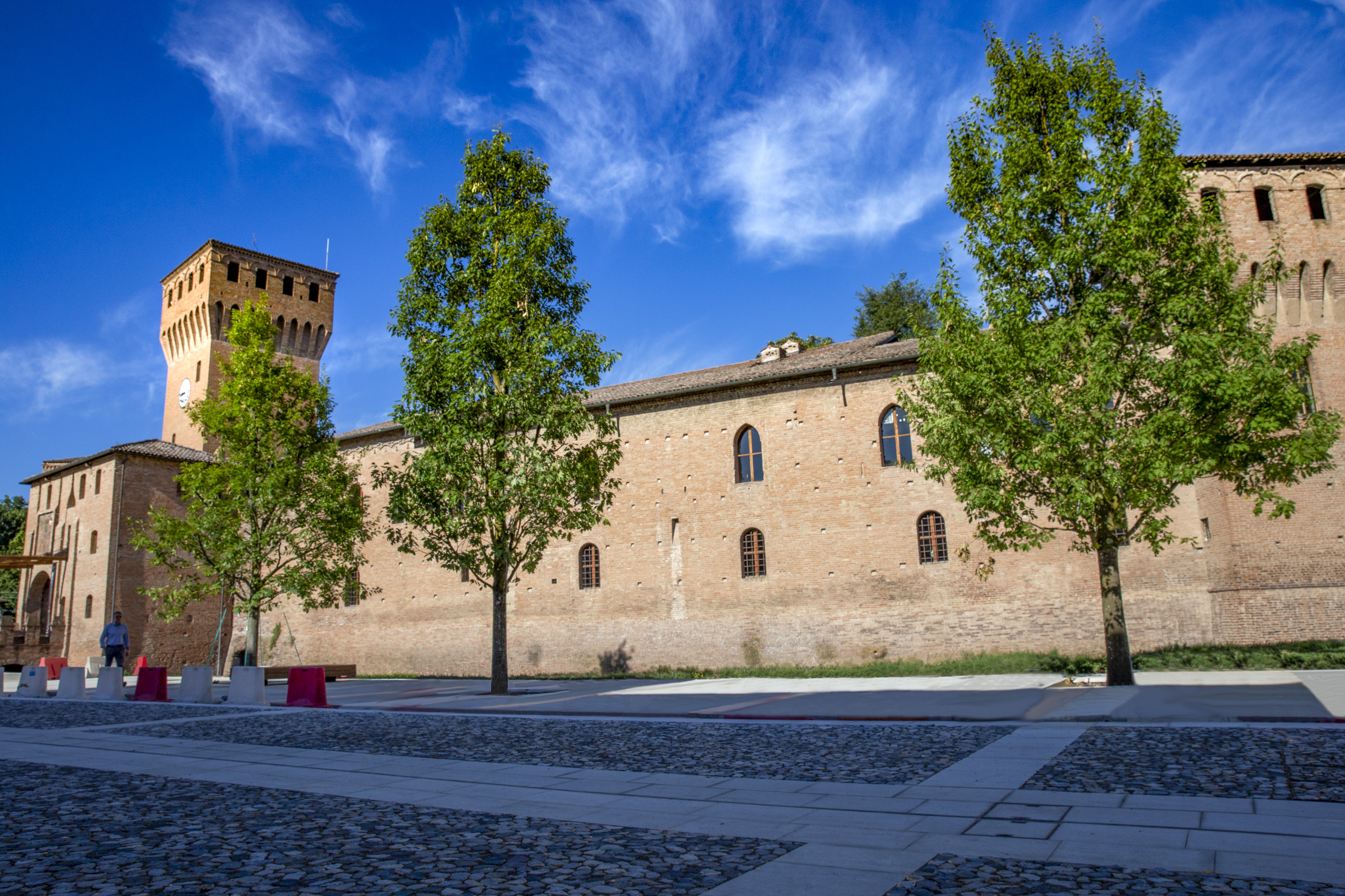 In occasione dell’intervento, sono stati installati anche per questa zona nuovi pali con LED a basso consumo energetico, attrezzati con portastendardi utilizzabili durante gli eventi. Sono inoltre stati piantumati cinque alberi di pregio, querce già sviluppate per circa 10 metri di altezza ciascuna. L’intervento di ripavimentazione è stato realizzato eliminando dislivelli, scalini e qualsiasi tipo di ostacolo, per avere una piazza perfettamente fruibile “senza barriere”.