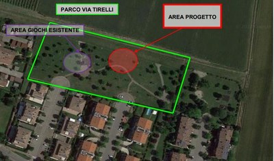 Il parco di via Tirelli ha un’estensione di circa 11.000 mq, comprensivo di un’area giochi. Si trova in una delle aree più recentemente urbanizzate della frazione e confina a nord con la campagna. È dotato di numerosi parcheggi pubblici.
