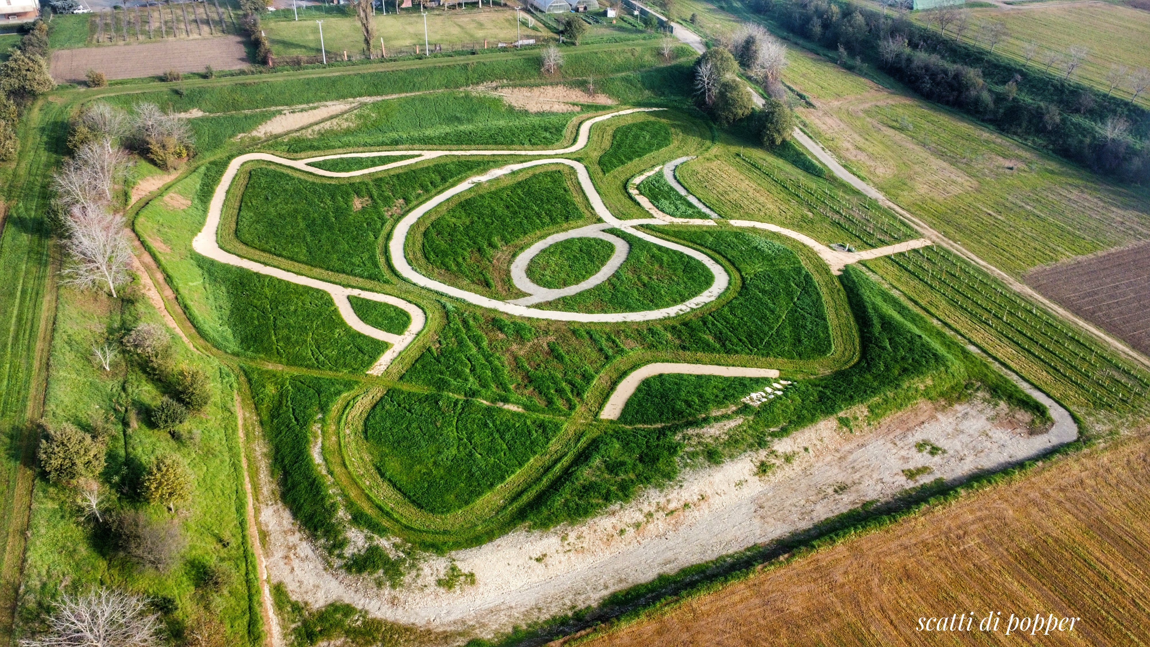 Grazie a un finanziamento regionale, sono stati realizzati percorsi protetti e in sicurezza per la pratica del ciclismo fuoristrada (MTB o ciclocross). I percorsi sono quattro, dal più semplice al più impegnativo, con diverse tipologie di pavimentazione per uno sviluppo completo di circa 1.200 metri. Nello specifico, due percorsi sono dedicati ai più piccoli e hanno una pavimentazione più regolare (macadam e stabilizzato), mentre gli altri due sono in terra battuta e in ghiaia vagliata; questi includono un paio di saliscendi sugli argini della cava e brevi tratti pavimentati con sassi di fiume e rocce per ricreare situazioni rinvenibili nel fuoristrada, oltre a una serie di gobbe e ostacoli di vario genere.