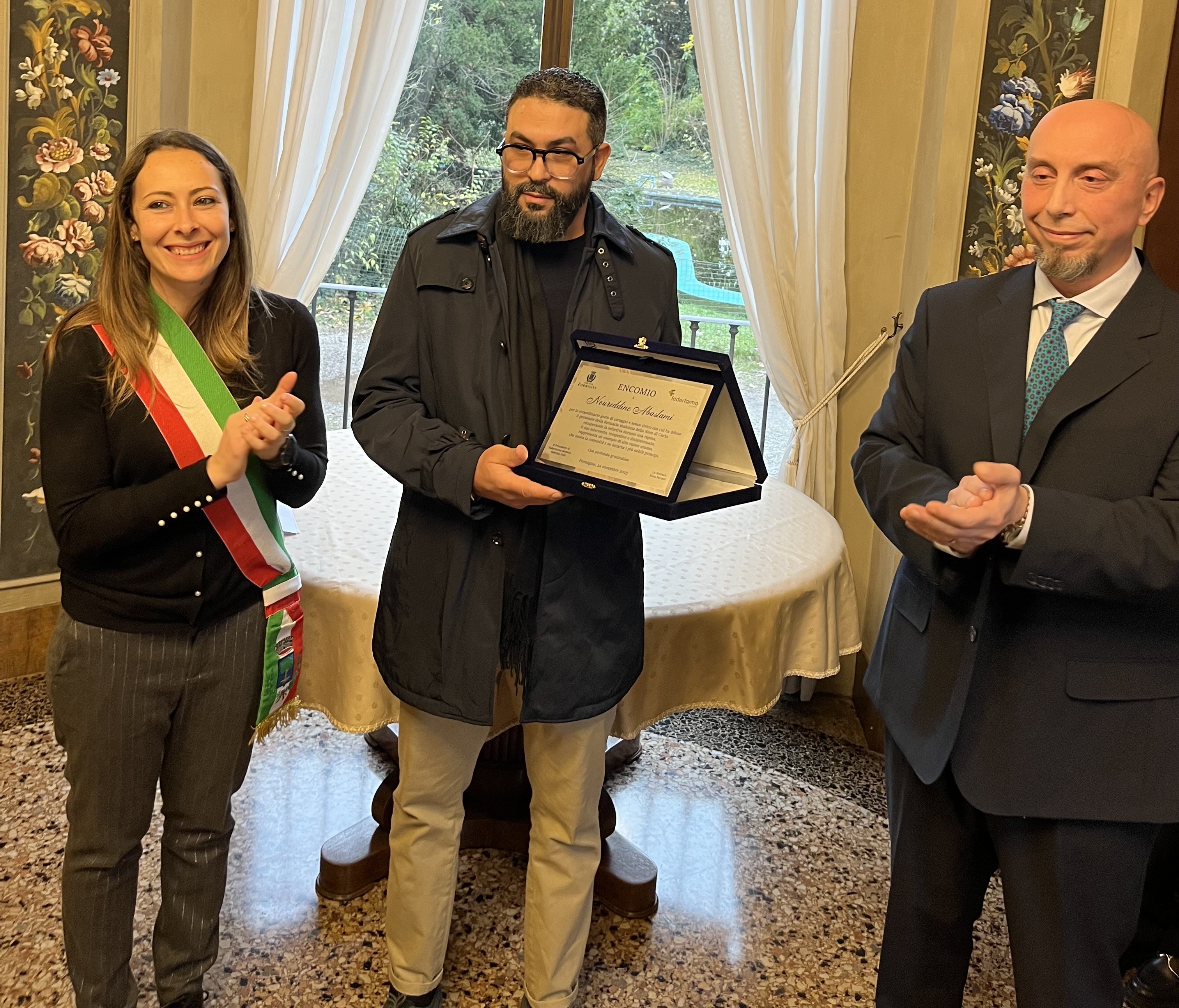 Si è svolta questo pomeriggio presso la Biblioteca Daria Bertolani Marchetti di Formigine la cerimonia di encomio a Noureddine Abaslami, il cittadino che lo scorso venerdì è intervenuto durante la rapina alla farmacia di Corlo, difendendo il personale e contribuendo al recupero della refurtiva. Il riconoscimento, riportato sulla targa consegnata dalla Sindaca di Formigine Elisa Parenti e dal Presidente di Federfarma Modena Fabrizio Violi, è stato assegnato “per lo straordinario gesto di coraggio e senso civico con cui ha difeso il personale della Farmacia Madonna della Neve di Corlo, recuperando la refurtiva durante una rapina. Il suo intervento, tempestivo e disinteressato, rappresenta un esempio di alto valore umano, che onora la comunità e ne incarna i più nobili principi”.